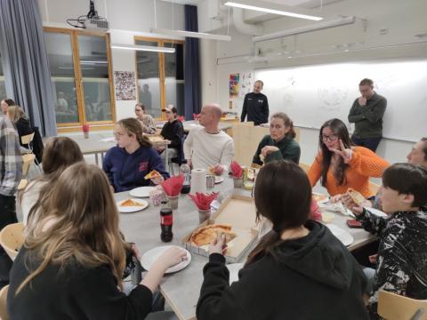 Ce soir, il était déjà l'heure d'un dîner d'adieu avec les familles d'accueil. Nous avons partagé des pizzas, les gâteaux que nous avions préparés hier et surtout de derniers moments conviviaux. Une partie de "floorball" endiablée a clos la soirée.