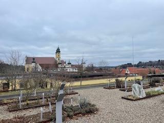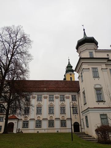 L'après-midi a été consacré à la découverte du village sous forme d'un jeu de piste. Murs blancs, toits rouges mais surtout un immense monastère avec son église baroque. L'ensemble des bâtiments conventuels est dans un état de conservation remarquable, quant au blason, il a été dessiné par l'abbé dont l'école porte le nom : Hermann Vogler.