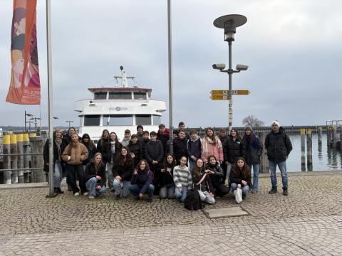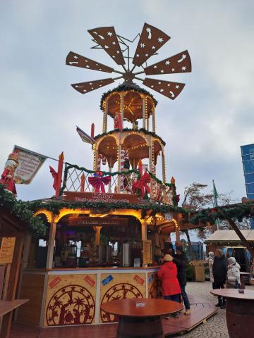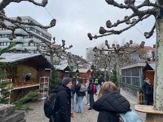 Nous avons laissé cette eau noire couler pour un lac dans lequel s'écroulait le ciel gris. C'est en effet au bord du lac de Constance nommé Bodensee en allemand que nous avons découvert le marché de Noël illuminé de la ville de Friedrichshafen. Cette ville fait face aux neiges des Alpes suisses et autrichiennes.