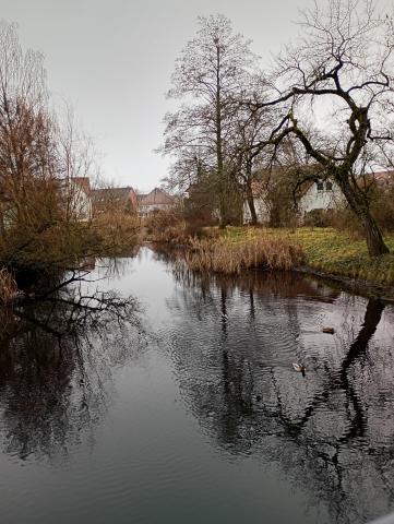 L'eau du ruisseau qui la traverse, l'Ach, doit d'abord rejoindre le Danube et parcourir près de trois mille kilomètres avant de se jeter dans la mer Noire. On dit qu'il suffit de regarder la couleur de cette eau pour connaître l'origine du nom de cette mer.