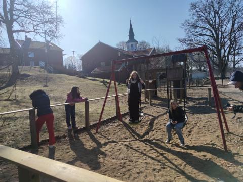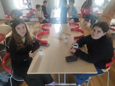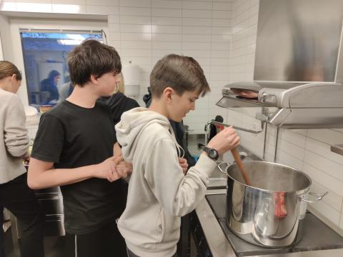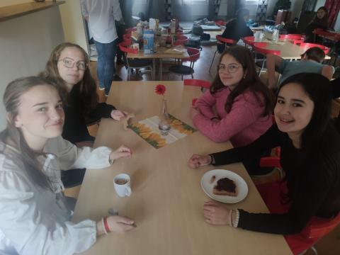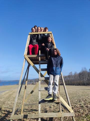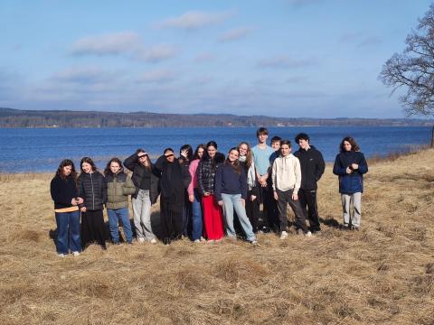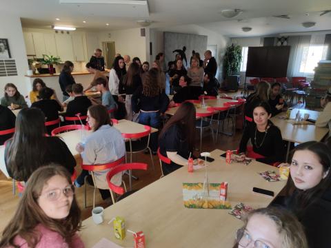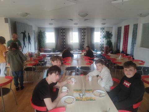 Ce dimanche matin, Le soleil a dissipé la brume à l'heure de notre réveil. Cela nous a permis de faire une belle promenade vers le lac avant l'arrivée des familles de nos correspondants qui sont venues partager un "fika" avec nous. C'est ainsi qu'on appelle le moment de la pause qui permet de prendre une boisson et de déguster, par exemple, des "kannelbular" (roulés à la cannelle).