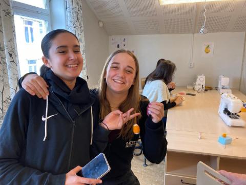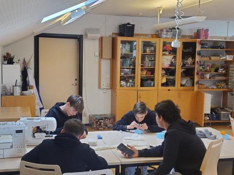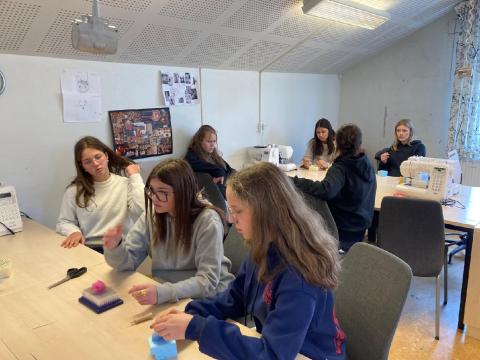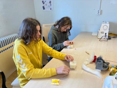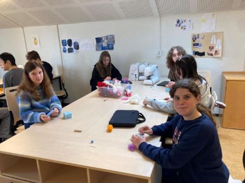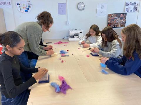 Ces relations souples ne dispensent pas de se mettre au travail. Nous voici dans les cours de science, d'histoire ou d'anglais. Pour la musique, les élèves se répartissent dans quatre salles où ils peuvent pratiquer la batterie, le clavier ou la guitare. Dans l'atelier de travail textile, nous feutrons de la laine pour fabriquer de petites décorations de Pâques.